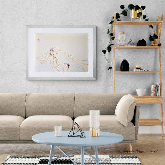 Disegno a matita e stabilotone su carta realizzato nel 1997. Il corpo nudo appare disteso in una continuità di linee leggere e...
