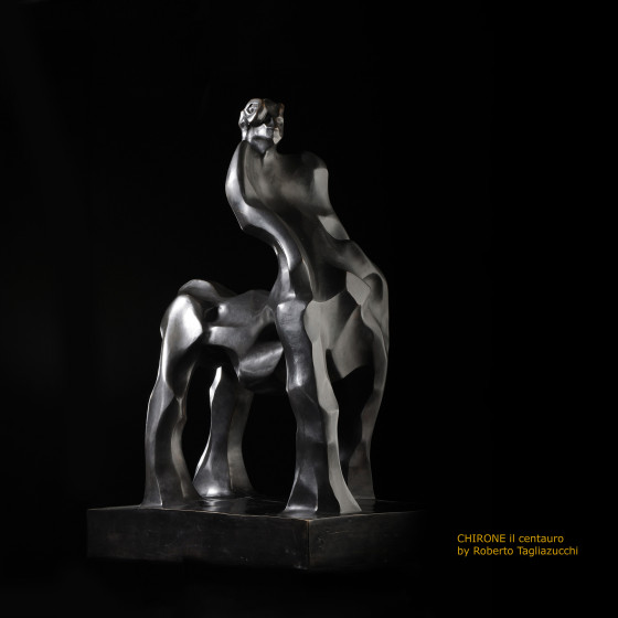 "CHIRONE II centauro" di Roberto Tagliazucchi, una scultura in bronzo che fonde mito e modernità, è un'interpretazione...
